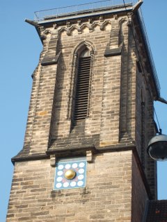 Schöne Monduhr an der Gartenkirche im Gartenfriedhof von Hannover.