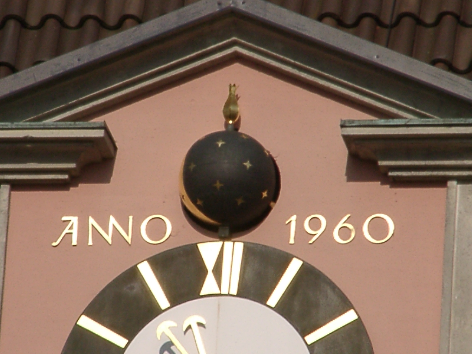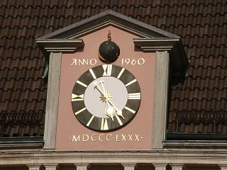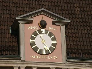 Die astronomische Uhr befindet sich am alten Rathaus an der Westseite in einer Dachgaube.