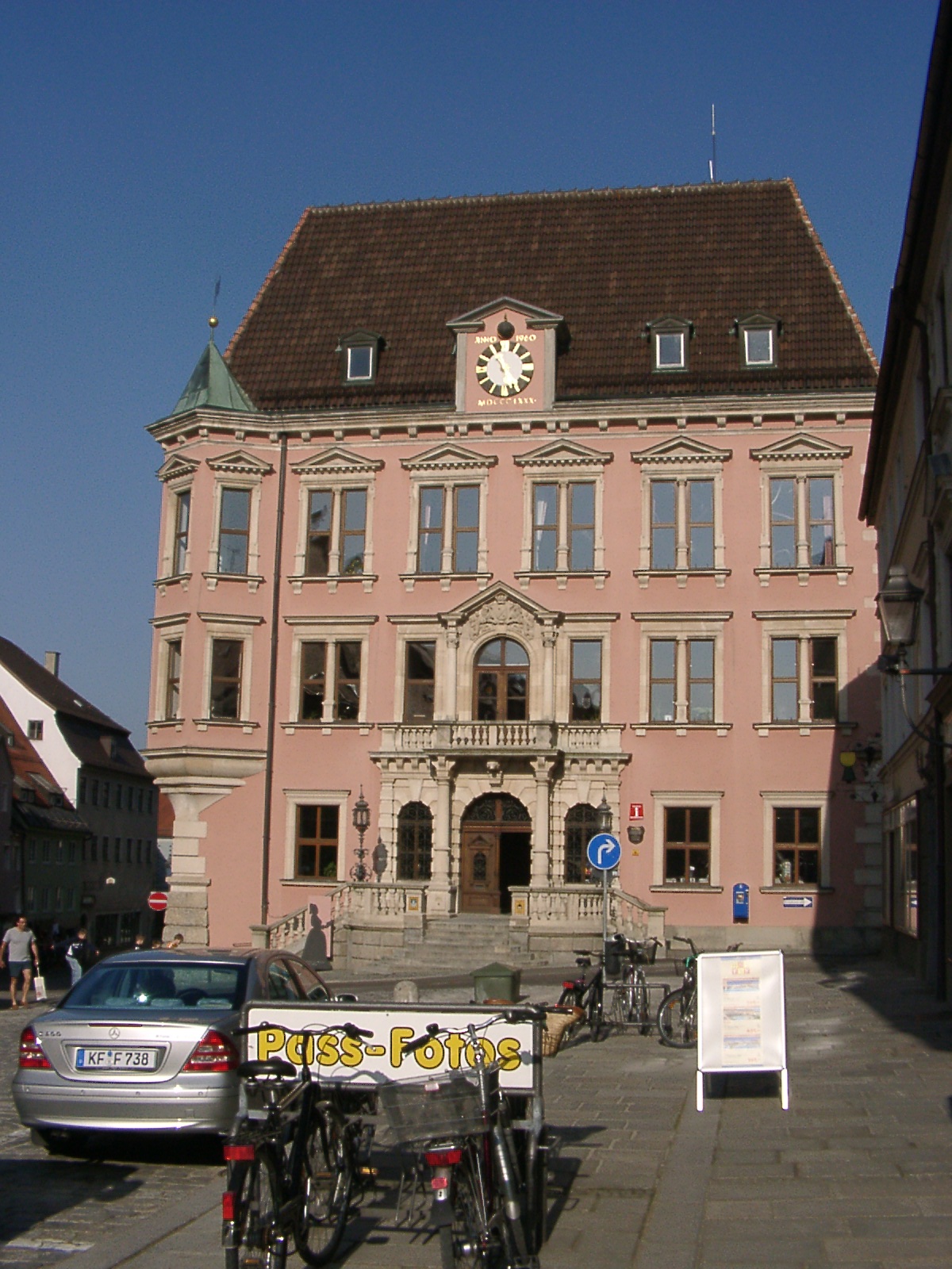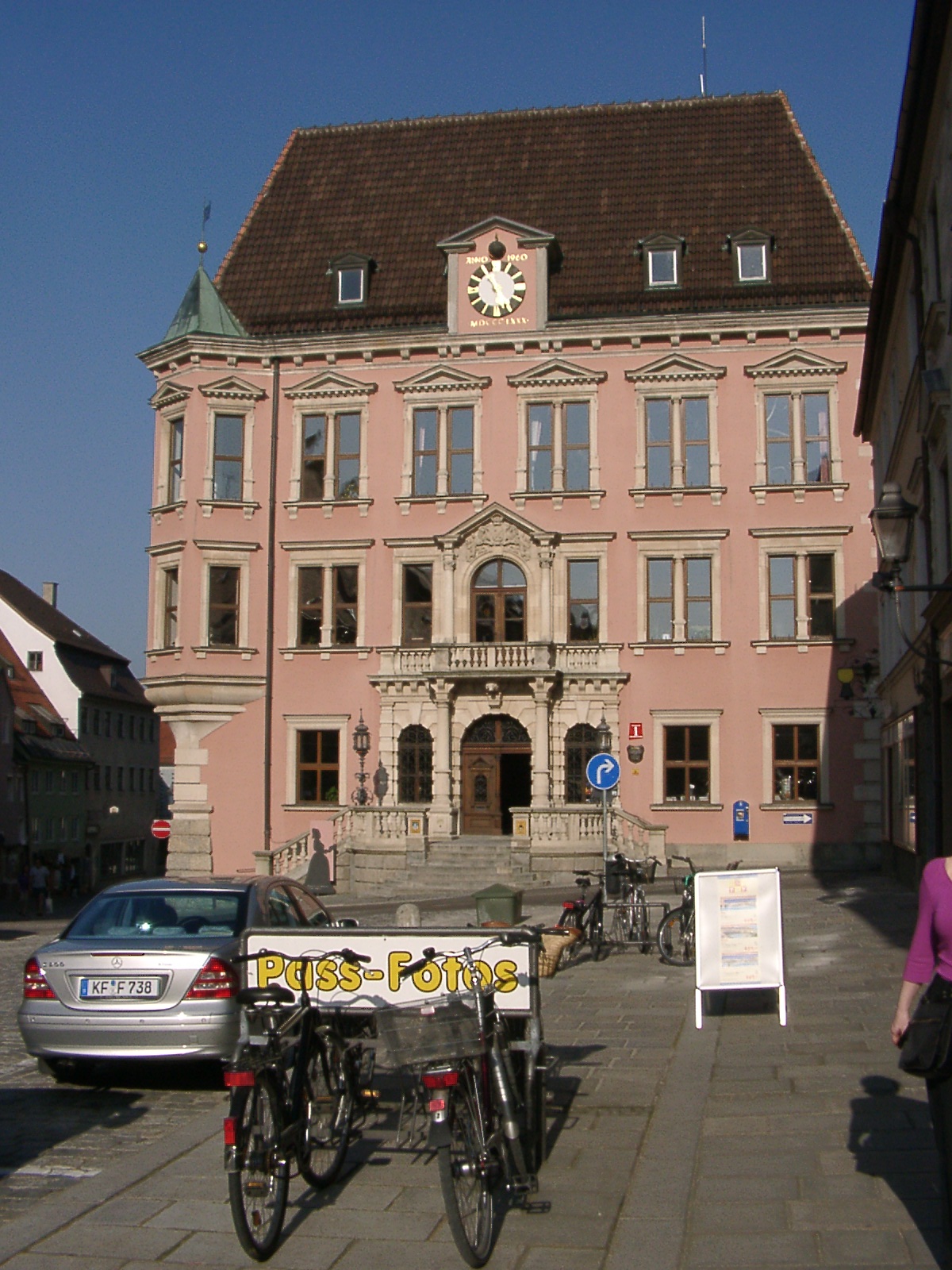 Als ich in Kaufbeuren war, stand ich mit meinem Foto vor einem Geschäft und suchte eine günstige Position für eine Aufnahme. Da sprach mich ein Frau an. "Soll ich ihnen mal was Tolles zeigen? Am Rathaus hat es eine Mondanzeige!"