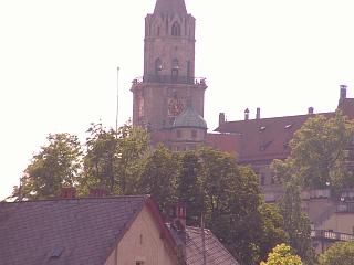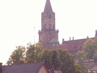 Die Uhr befindet sich in einem Turm. Von außen sieht man 3 Zifferblättern an der Nord-, Ost- und Südseite des Turmes. Über jedem Zifferblatt befindet sich eine Kugel für die Mondphase. Die Kugel der Mondphase ist zur Hälfte schwarz, für die dunkle Seite des Mondes und zur anderen Hälfte gold für die beleuchtete Seite.